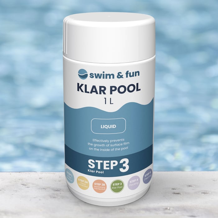 Hindrer at bassenget blir glatt og får belegg på bunnen og sidene. Skal brukes én gang i uken til forebygging. Dosering: 0,5 dl per 10 000 liter vann. Mengde: 1 liter.