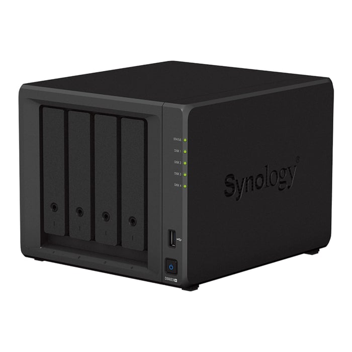 Synology DS923+ er en allsidig 4-bay-NAS-løsning som er enkel å styre og utvide når behovene dine forandres. Det har støtte for opptil 9 enheter, raskt nettverk og NVMe SSD-er for bufring eller ytterligere lagringspool. Den drives av Synology DiskStation Manager (DSM) og byr på en fleksibel alt-i-ett-løsning for datadeling, synkronisering, sikkerhetskopiering og overvåking.