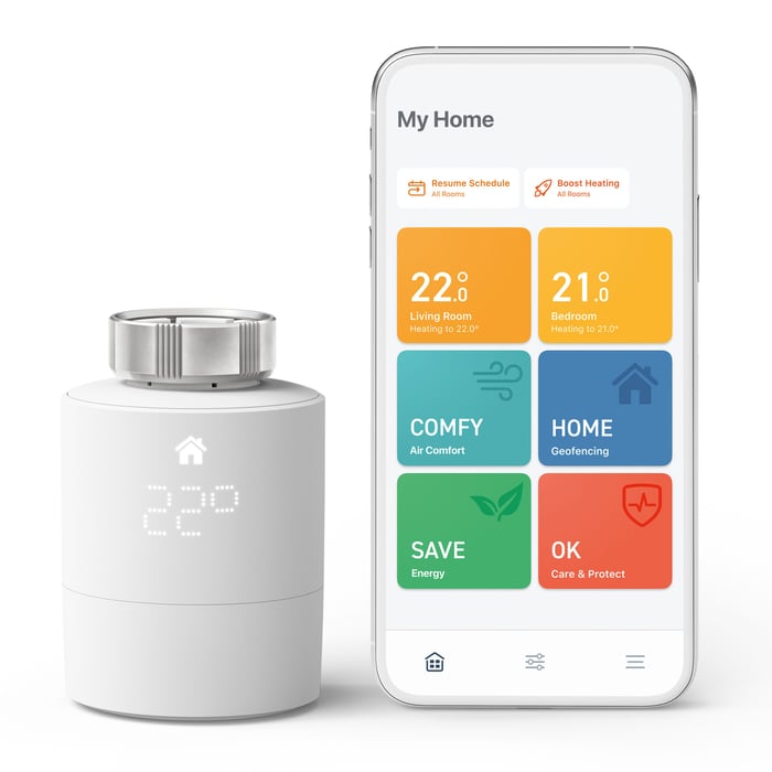 Tado° Smart Radiator-termostater er ideelle for sentralvarme og fjernvarmesystemer. De er egnet for bruk sammen med tradisjonelle radiatorer med termostatventiler (ulike adaptere følger med), og har også barnelås. Geofencing, Open Window Detection og andre funksjoner kan spare opptil 31 % energi, mens Smart Schedules og Air Comfort garanterer det optimale romklimaet. Leveres med 1x termostat. For ekstra radiatorer se: 1-pk. (52121) og 4-pk. (52122).