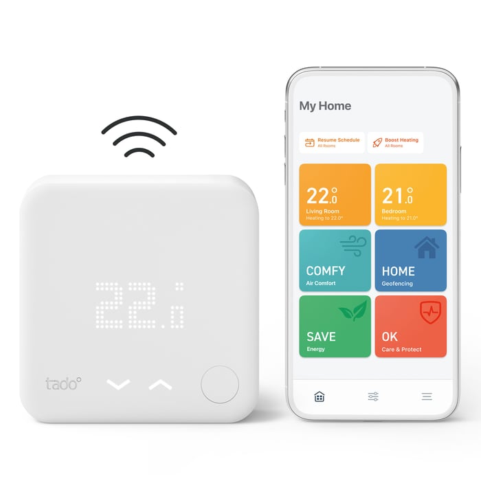 Spar energi uten at det går ut over komforten. Styr oppvarmingen hvor som helst med appen, og bruk Smart Schedules til å justere temperaturen i hvert rom etter behov. tado° bruker Geofencing til å minne deg på å senke varmen når ingen er hjemme, og øke den igjen når noen er på vei hjem. Erstatter termostater med trådløse tilkoblinger til varmtvannsberedere. For Tado Wired Thermostat se (52118).
