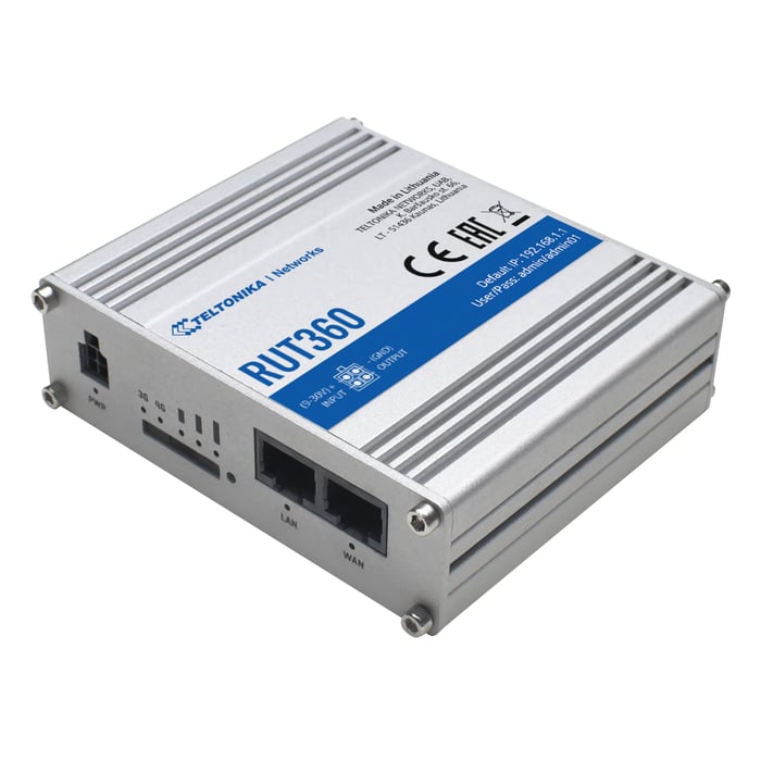 Teltonika RUT360 er oppfølgeren til populære RUT240 – en kompakt, kraftig og robust 4G-ruter med innebygd modem. Høyere hastigheter med Cat. 6 LTE (opptil 300 Mb/s) og 2x2 MIMO-wifi. Velegnet for bruk som krever høy ytelse, sikkerhet og pålitelighet. Ruteren er utstyrt med wifi og to nettverksporter (den ene kan brukes som WAN for fast internett) og har avanserte funksjoner som VPN, WAN-failover og innebygd brannmur.