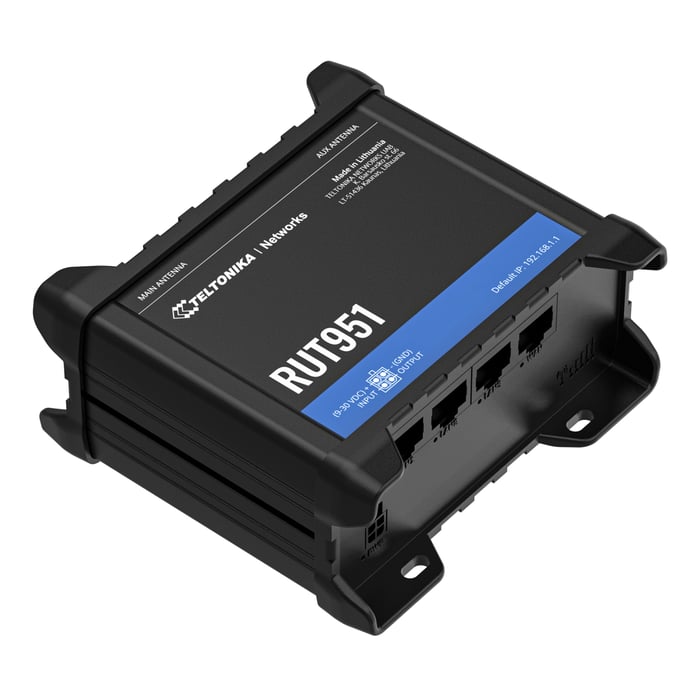Teltonika RUT951 er en kompakt, kraftig og profesjonell 4G-ruter med innebygd modem. Utstyrt med to SIM-kortplasser, wifi og 4x RJ45-porter (hvorav én er WAN). Velegnet for bruk som krever høy ytelse, sikkerhet og pålitelighet. Ruteren er utviklet for industrielt bruk der det stilles høye krav til allsidighet, robusthet, driftssikkerhet og lavt strømforbruk. Det gjør den velegnet for f.eks. bobil, båt, hytte eller camping.