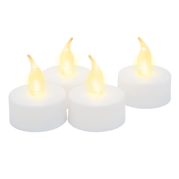 Fire batteridrevne LED-telys i standard størrelse som gir ett trygt og stemningsfullt lysskinn. Lysene har en flimrende, varmhvit modus og en timerfunksjon som, når den er aktivert, holder lysene tent i 6 timer og slukket i 18.