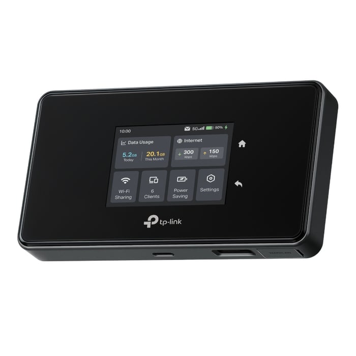 TP-Link M8550 er en kraftig mobil 5G-ruter med WiFi 6E og støtte for opptil 32 enheter. Perfekt for jobb og underholdning på farten, med hastigheter på opptil 3,4 Gb/s og lang batteritid.