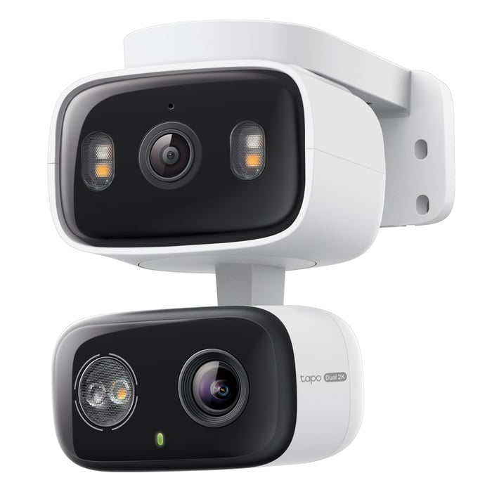 TP-Link Tapo C246D har to kameraer og fanger både helheten og detaljene, innendørs og utendørs. Den faste vidvinkelen dekker hele området, mens det bevegelige telekameraet panorerer 360 grader og vippes 135 grader for å følge bevegelser i sanntid. Takket være AI-støtte kan kameraet skille mellom mennesker, kjøretøy og kjæledyr, og i tillegg også lyder, som barneskrik eller knust glass. Værbeskyttet konstruksjon, fleksibel montering og nattmodus med spotlights og fargebilde bidrar dessuten til trygg overvåkning døgnet rundt.