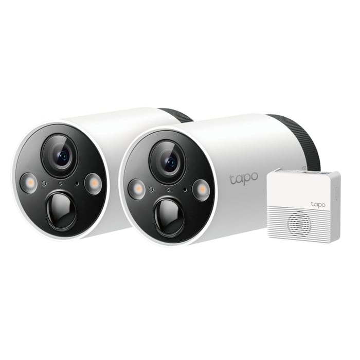 Tapo C420S2 er et overvåkingssystem med to kameraer for inne- og utebruk. Kobles til hjemmenettverket med den medfølgende broen og gjør at du kan se live og få varsler ved oppdaget bevegelse. Kameraene er utstyrt med nattsyn i farge og toveis kommunikasjon som gjør at du kan både snakke og lytte gjennom dem. Velg mellom skybasert eller lokal lagring via et Micro-SD-kort (selges separat) på opptil 512 GB. Kameraene er oppladbare og har batteritid på opptil 180 dager.