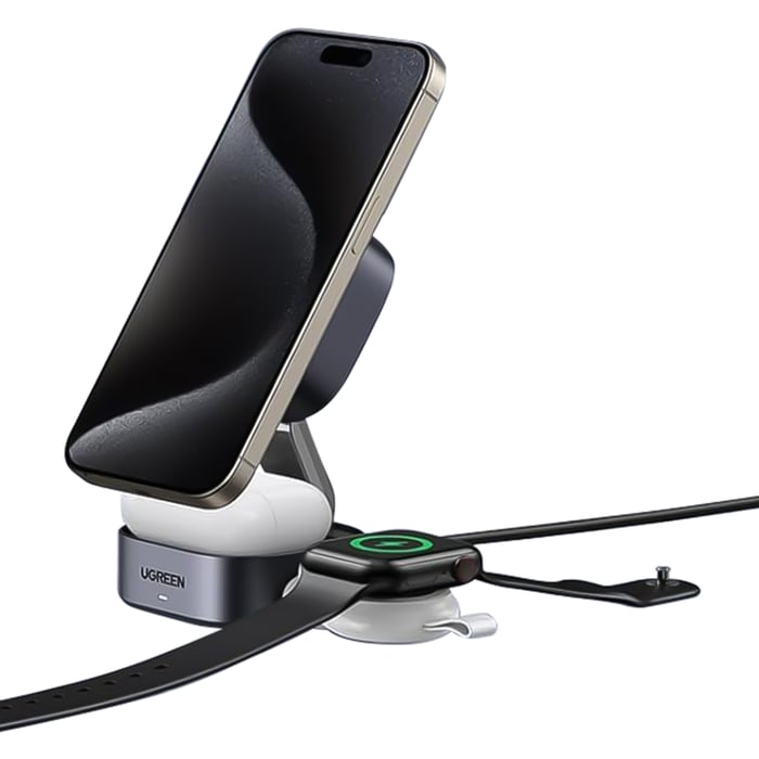 Liten, elegant og trådløs ladestasjon for iPhone og AirPods. Qi2-sertifisert og MagSafe-kompatibel for hurtiglading av din iPhone opptil 15 W via den magnetiske holderen. Har også ladeoverflater for Apple Airpods. Liten og kompakt når den er brettet sammen. Det gjør at den enkelt får plass i lomma eller i en veske. Ladekabel følger med.