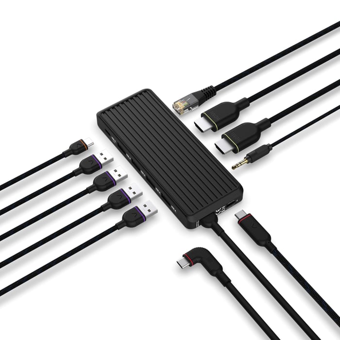 Det perfekte tilbehøret til enheter som har USB-C. Kobles til med den innebygde USB-C-kabelen og gir direkte tilgang til 10 tilkoblinger. Har støtte for lading av datamaskiner via USB-PD (opptil 100 W), og har to HDMI-utganger (1x 4K/30 Hz eller 2x Full-HD/60 Hz). Utstyrt med 2 HDMI-porter, 2 USB-C-porter, 4 USB-A-porter, et nettverksuttak og 3,5 mm AUX-port. Kompatibel med Windows. Kabellengde: 30 cm. Vekt: 183 g. Obs! MacBook M1/M2 Air/Pro 13” støtter kun én ekstern skjerm.