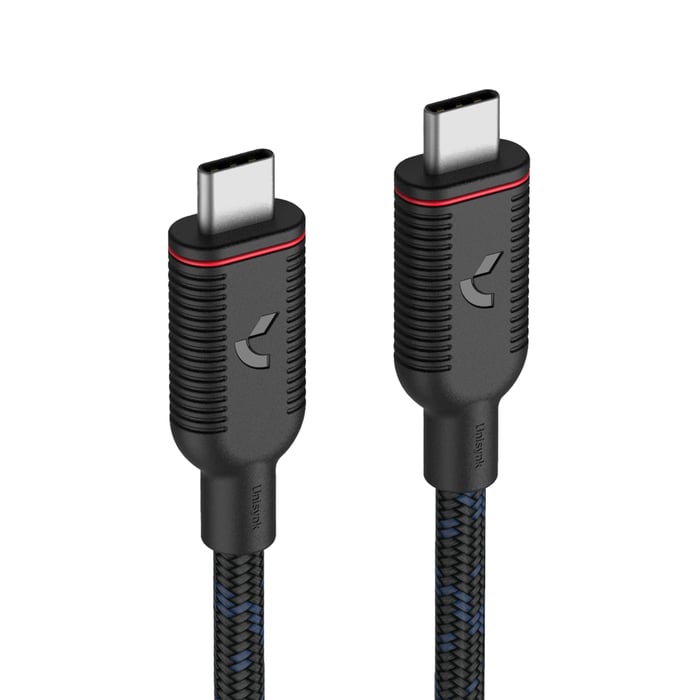USB-C kabel for lading, dataoverføring og videosiagnal mellom to enheter med USB-C kontakt. Støtter opptil 240 W med USB Power Delivery og overfører data på inntil 40 Gbps. Klarer til og med video på opptil 8K@60 Hz. Flettet og solid konstruksjon med innebygd E-Mark-chip og effektiv lading. USB-C hann til USB-C hann. Perfekt for både laptop og mobil.