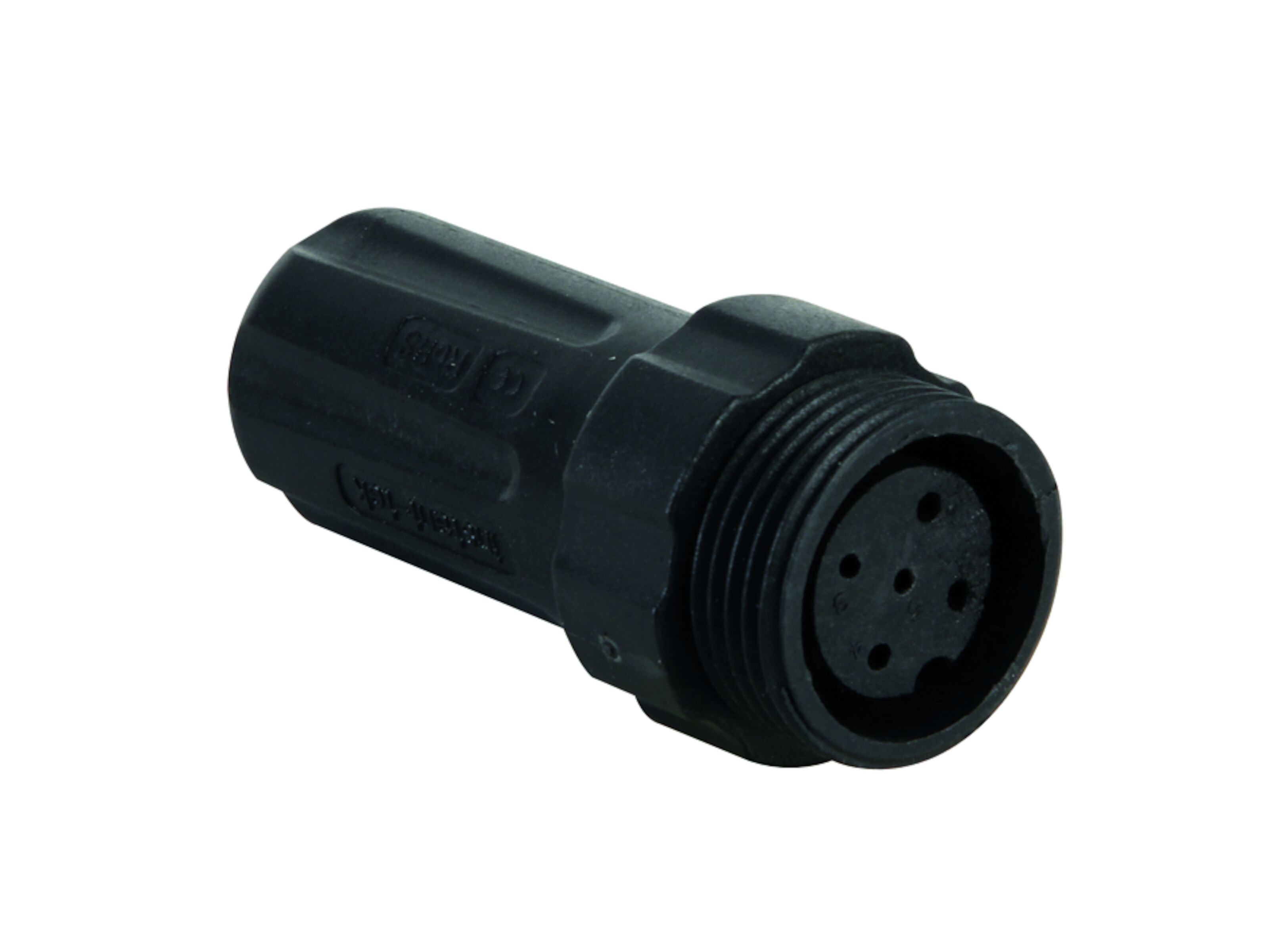 Skarpe nyloninkapsling som ikke korroderer. Gullbelagte kontakter og tetning i EPDM-gummi. Egnet for utsatte miljøer, for eksempel til bruk i båter, biler, campingvogner, motorsykler. Rask og enkel tilkobling. Høy polariseringssikkerhet takket være styrespor. Maks: 24 V, 10 A. Sikker, gjenget låsing. Loddetilkobling. For kabel Ø 6,5-8,5 mm. Tilgjengelig som hann, hunn og kabinettmontert hunn.