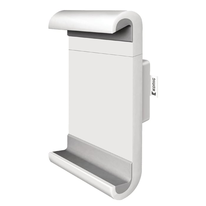 Holdere for nettbrett med ruterbart feste (360°). Passer nettbrett fra 7 til 12 tommer. Monteres tett opptil veggen, bygger ut 27,5 mm. Passer også til hyllemontering. Leveres med skruer og plugger for montering. Maksimal bredde, feste: ca 20 cm. Maksbelastning: 1 kg.