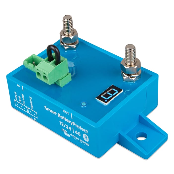 Victron Smart Battery Connect er en utladingsbeskyttelse for f.eks. startbatterier eller bodelsbatterier i bobil eller båt. Programmerbare av- og påkoblingsverdier via Bluetooth og medfølgende app (iOS og Android) eller via forhåndsinnstilte programmer. For både 12- og 24 V-system.