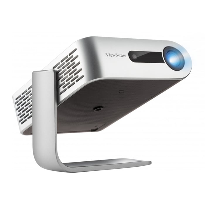 Har en stabil metallkonstruksjon og opptil 6 timers batteridrift. Koble projektoren til mobil, nettbrett eller datamaskin via kabel for å bruke apper som YouTube og ulike strømmetjenester. Det integrerte stativet kan justeres 360° for enkelt å bruke taket som projektoroverflate. Og med innebygde høyttalere fra Harman Kardon har du også lyden på din side. Kan brukes som ekstern lydkilde eller parkobles med andre trådløse høyttalere for enda høyere lydstyrke.
