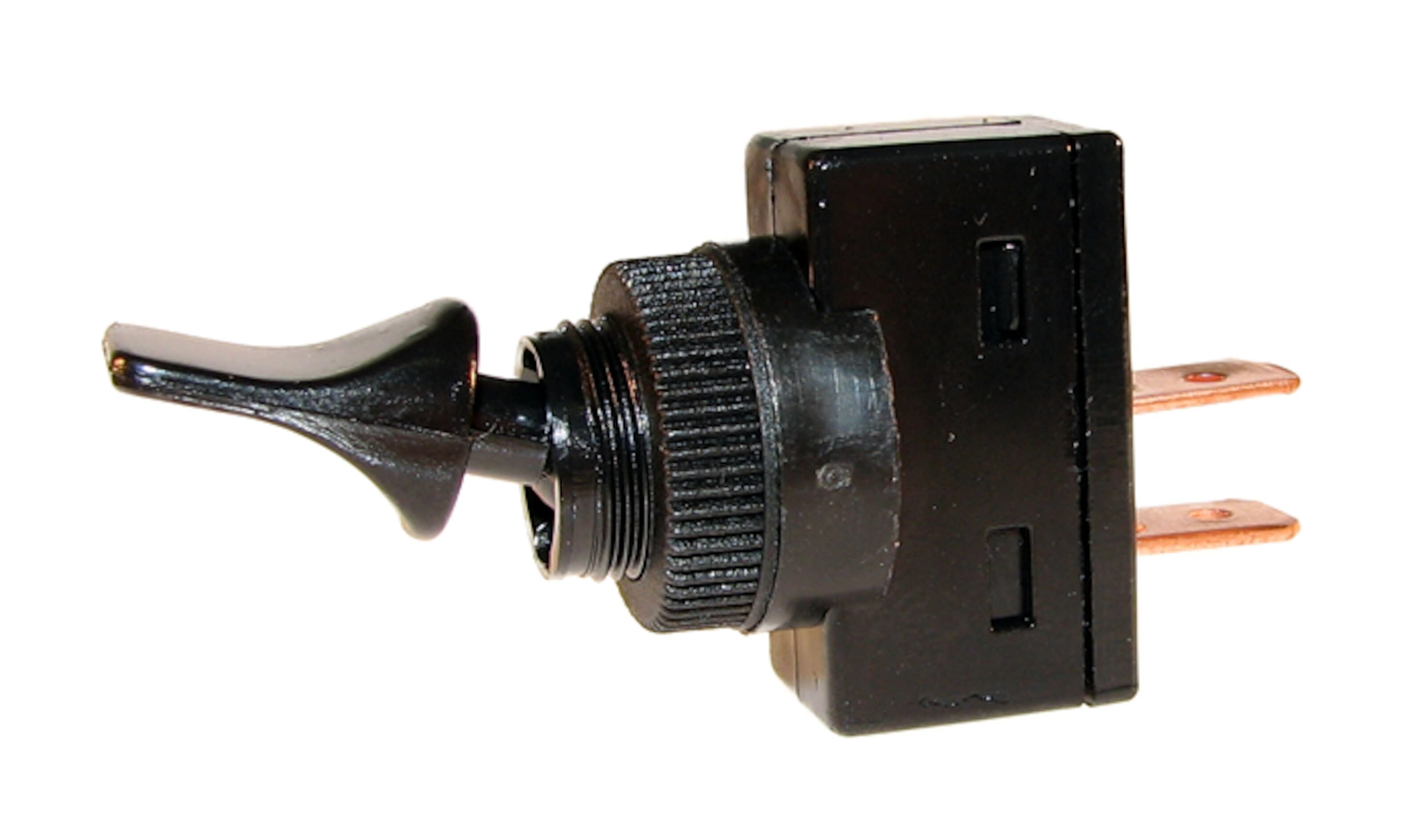 Enkeltpolet strømbryter for panelmontering. Bryteevne: 12 V / 20 A. Monteringshull: 12,5 mm For loddetilkobling eller flatstifthylse (2 stk 6,3 mm). Til-fra.