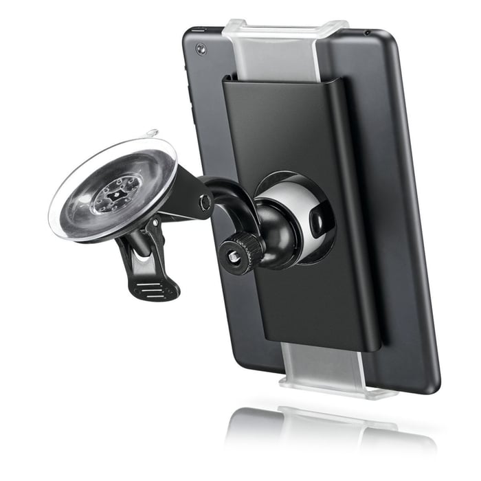 Holder for nettbrett. Festes på frontruten med en kraftig sugekopp. Holderen kan vris 360° for ønsket betrakningsvinkel. Hurtigfestet for nettbrettet kan også brukes på Vogels Tablet-veggfeste med arm (30082), veggfeste (30080) eller bilfeste for nakkestøtte. Festet har myke fester i gummi som holder fast og tilpasser seg etter nettbrettet. Passer for nettbrett på mellom 7 og 12 tommer. 5 års garanti.