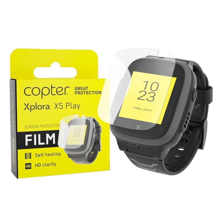 Skjermbeskytter med selvhelende overflate for Xplora X5 Play, smartklokken for barn. Gir 100 % klarhet og beskytter skjermen mot riper og skader. Festes enkelt på skjermen og er knapt merkbar på klokken.