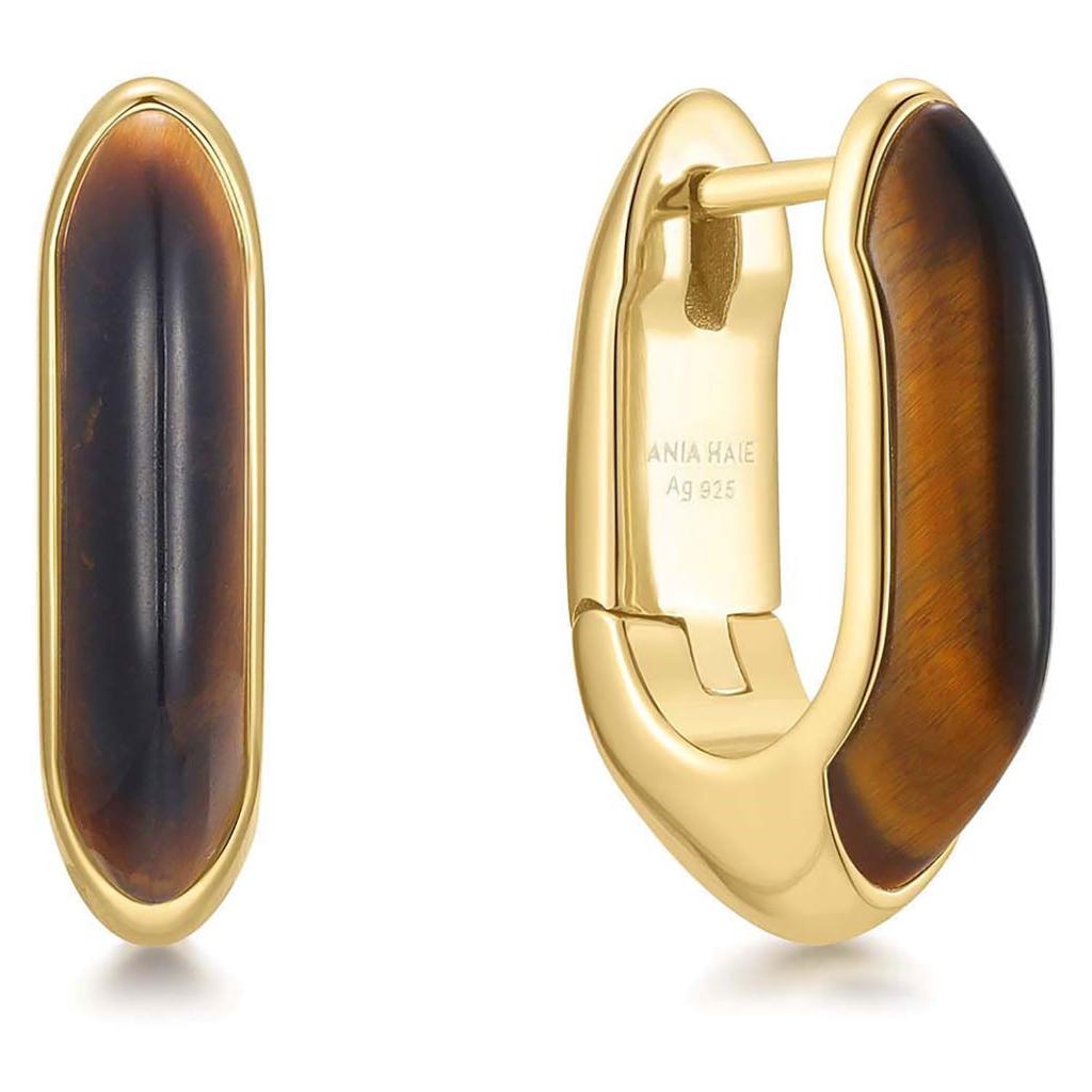 Øreringer i 925 forgylt sølv med tigerøye
